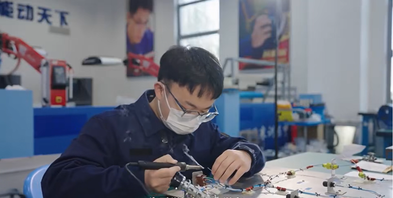 他以车间为家,每天焊接数百个焊点、绑扎上千个“丁香结”,用“记错题本”的方式总结经验,不断打磨技术。为了掌握先进工艺流程,他主动“拖班”学习,向老师傅虚心请教,甚至在转正前就提前达到上岗水平。袖口磨出的毛边、操作台上密密麻麻的刻痕,都见证了他从“新手”到“技术尖兵”的蜕变。