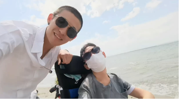 “小伙与渐冻症妈妈走的
