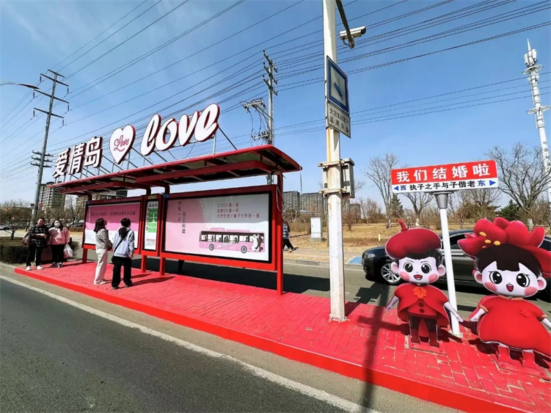 包头市青山区把婚姻文化创意产业园婚姻登记处附近的公交站点更名为“爱情岛”站,让婚姻登记更具仪式感。