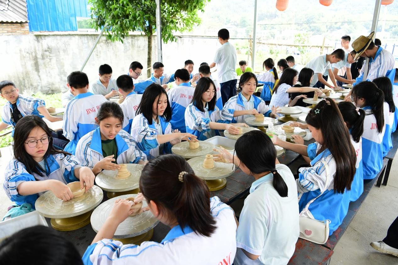 研学学生在乌石峰村“三十六坊”陶艺坊学习陶艺制作。乌石峰村供图