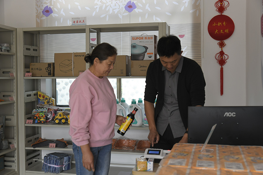 村民在马庄村积分超市兑换物品。徐州市文明办供图