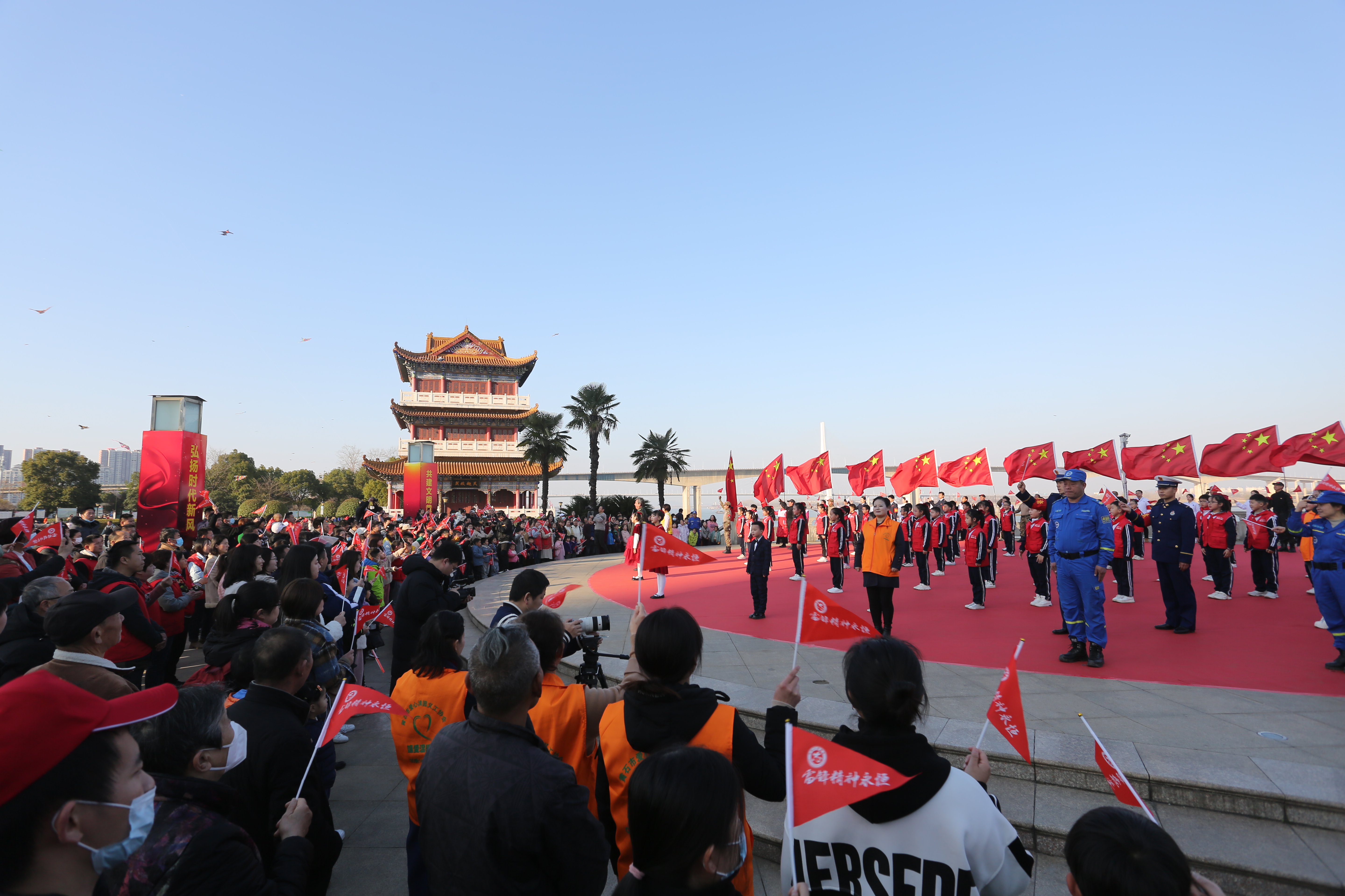 黄石江滩公园《学习雷锋好榜样》主题快闪活动。黄石市文明办 供图