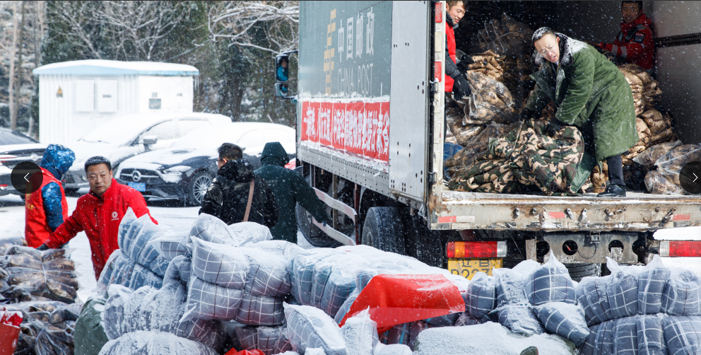 王官升组织志愿者为甘肃震区捐赠物资。(图片来源:王官升)