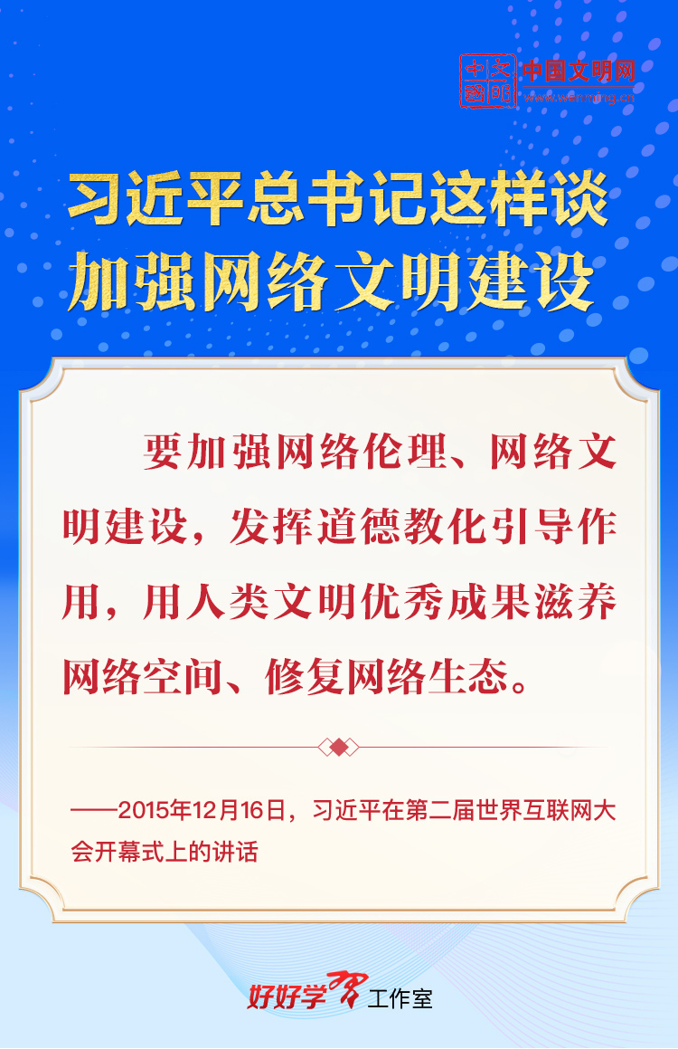 加强网络文明建设,是推进社会主义精神文明建设、提高社会文明程度的必然要求。习近平总书记高度重视网络文明建设,多次就加强网络文明建设作出重要论述,为新时代网络文明建设工作指明了前进方向、提供了根本遵循。让我们一起学习,共建网上美好精神家园。