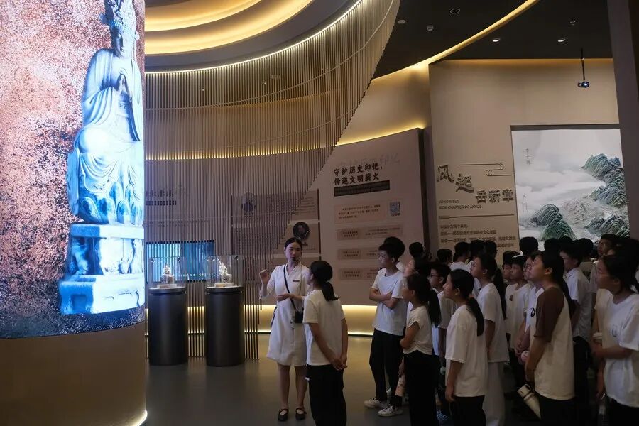 学生参观安岳石窟数字展示中心。四川文明网供图