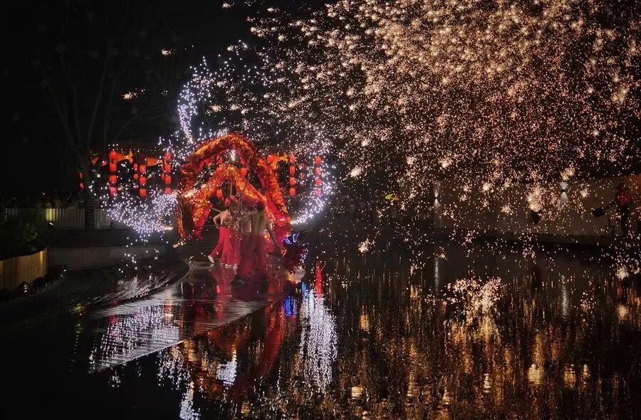 成都青羊区清源社区舞龙、打铁花表演。四川文明网供图