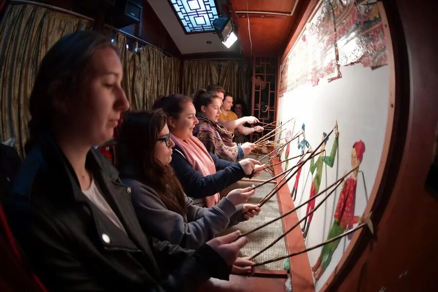 外国友人在阆中古城体验非遗项目。四川文明网供图