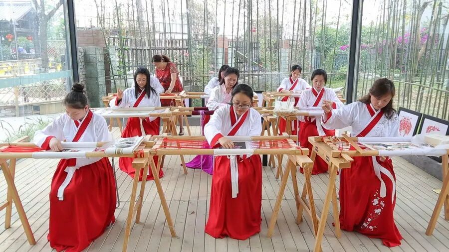 成都青羊区清源社区蜀绣非遗公开课。四川文明网供图